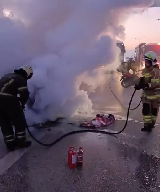 Sürücü, yangın tüpüyle alevlere müdahale etmeye çalıştı. Kısa sürede büyüyen yangına çevredeki vatandaşlar da araçlarında bulunan yangın tüpleriyle destek verdi. Yapılan ihbar üzerine olay yerine itfaiye ekipleri sevk edildi.
